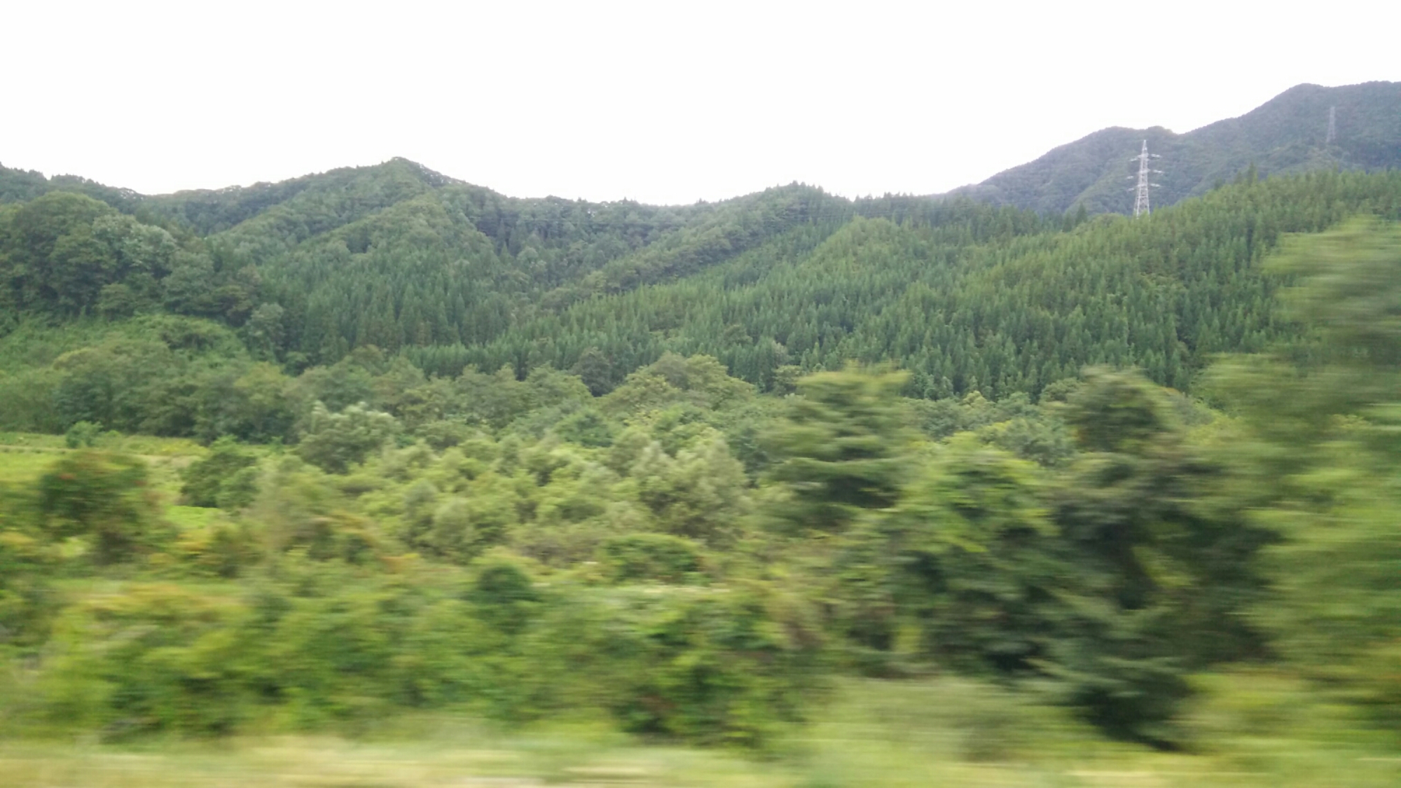 Now, another day later, I’m on another train line – the Akita Shinkansen – back from Akita to Sendai and the south. As bullet trains go, it seems slow, but as it winds its way through the mountains it has better views than the Tohoku shinkansen, which is hemmed in by towns and noise-reducing barriers. The views come in flashes – a mountain stream, a waterfall, a view down the valley, and then back into a tunnel, or a forest. At one point we waited for a few minutes for a train to come the other way down what turned out to be a stretch of single track. As we waited, there were waves of dragonflies playing about the window.