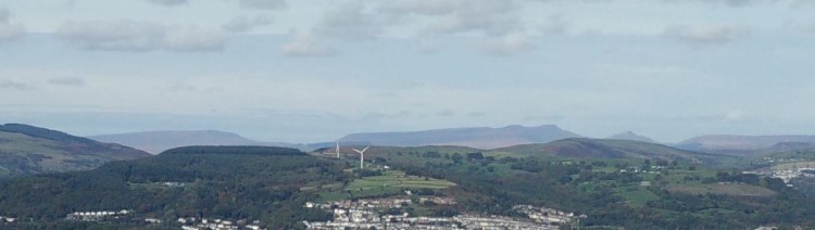 I learned in a recent language class that the Welsh word Ton means wave, but by analogy it can also refer to a line of hills. There are plenty of places near us named in this way – Ton Pentre, Tonypandy, Tongwynlais, Tonyrefail. The view from the top of our field is less dramatic than that of either of our neighbours, but it has a line of escarpments that has always struck me as being like a series of waves, one giving way to another. Unfortunately, it’s one of those things that doesn’t photograph well, like a full moon, because it turns out to be a much smaller proportion of the field of vision than you realise.