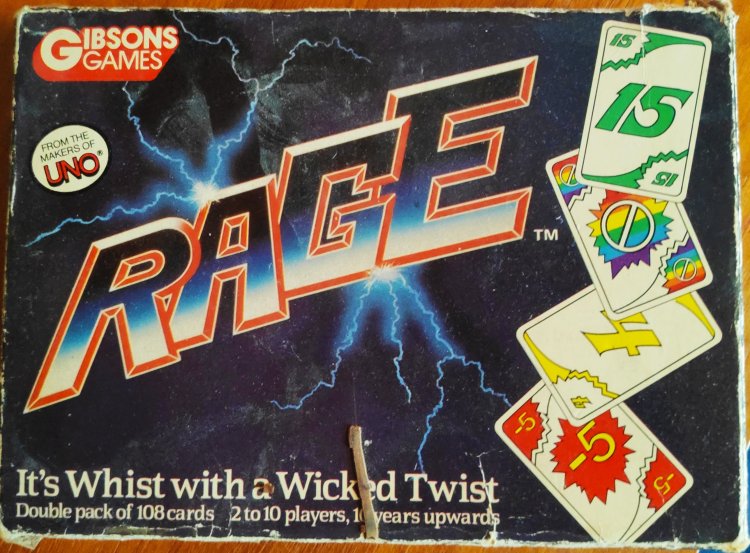 For many many years, we would have a summer holiday in Cornwall, packing the car up so full of clothes, pots, pans, beach kit, golf clubs to take down to a self-catering cottage, leaving at 5 am, breakfasting with Auntie Hilary in Exeter, sitting in traffic in Okehampton, looking out for the first sight of the sea. Obviously the games would take up a serious chunk of boot space, but there were a few small card games we used to play: as a family and with two or three other families who came down at the same time – Uno I guess is pretty well known, but Rage is another goodie. It’s like Whist, but you bid on how many tricks you expect to take and there are additional special cards to spice things up. You start with a round of 10 cards per person, but each subsequent deal you have one fewer card per hand, so by the time things get down to 4 or 5 cards per round, things get quite path dependent and unpredictable.